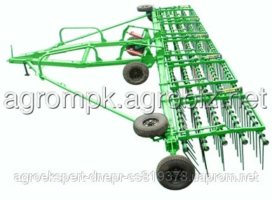 На кожній секції борони встановлено 5 рядів пружинних подвійних зубів довжиною 660мм і діаметром 16 мм виготовлених із зносостійкої термообробленої сталі з кроком 63,5 мм, що забезпечує якісне розпушування верхнього шару ґрунту та рівномірний розподіл рослинних залишків по полю це збільшує наявність гумусу в ґрунті та циркуляцію повітря та зменшує випаровування. Велика довжина пружинних подвійних зубів і регуляція кута нахилу в межах від 45 до 80 градусів дозволяє проводити обробіток ґрунтів різної вологості і твердості з великою кількістю післяжнивних залишків. Складання та розкладання борони проводиться механізатором за допомогою гідросистеми трактора. Положення опорних коліс регулюється у вертикальній площині, що дозволяє компенсувати знос робочих органів і забезпечує великий термін їхньої служби.
